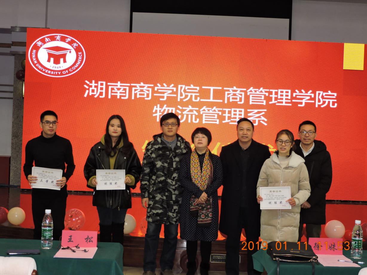 2019年1月11日,湖南商学院工商管理学院物流管理系颁奖仪式在岭南报告厅隆重举行。2018年,工商管理学院承办了“长风杯”大数据分析与挖掘竞赛、“弘广物流杯”大学生现代物流设计竞赛等比赛。在这些比赛中,我院有许多的学子取得了优异的成绩,为予以表彰与奖励,特举办此次颁奖仪式。本次颁奖仪式的专家、领导及参会人员有: