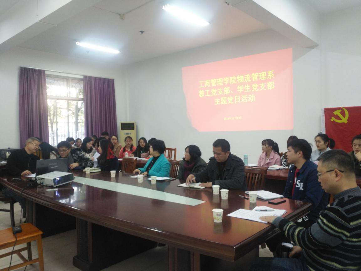 2018年11月23日下午,为了深入学习和贯彻落实习近平总书记在全国教育大会重要讲话,工商管理学院物流管理系教工党支部和学生支部联合开展主题党日活动。会议由教工党支部支部书记石彪主持。
