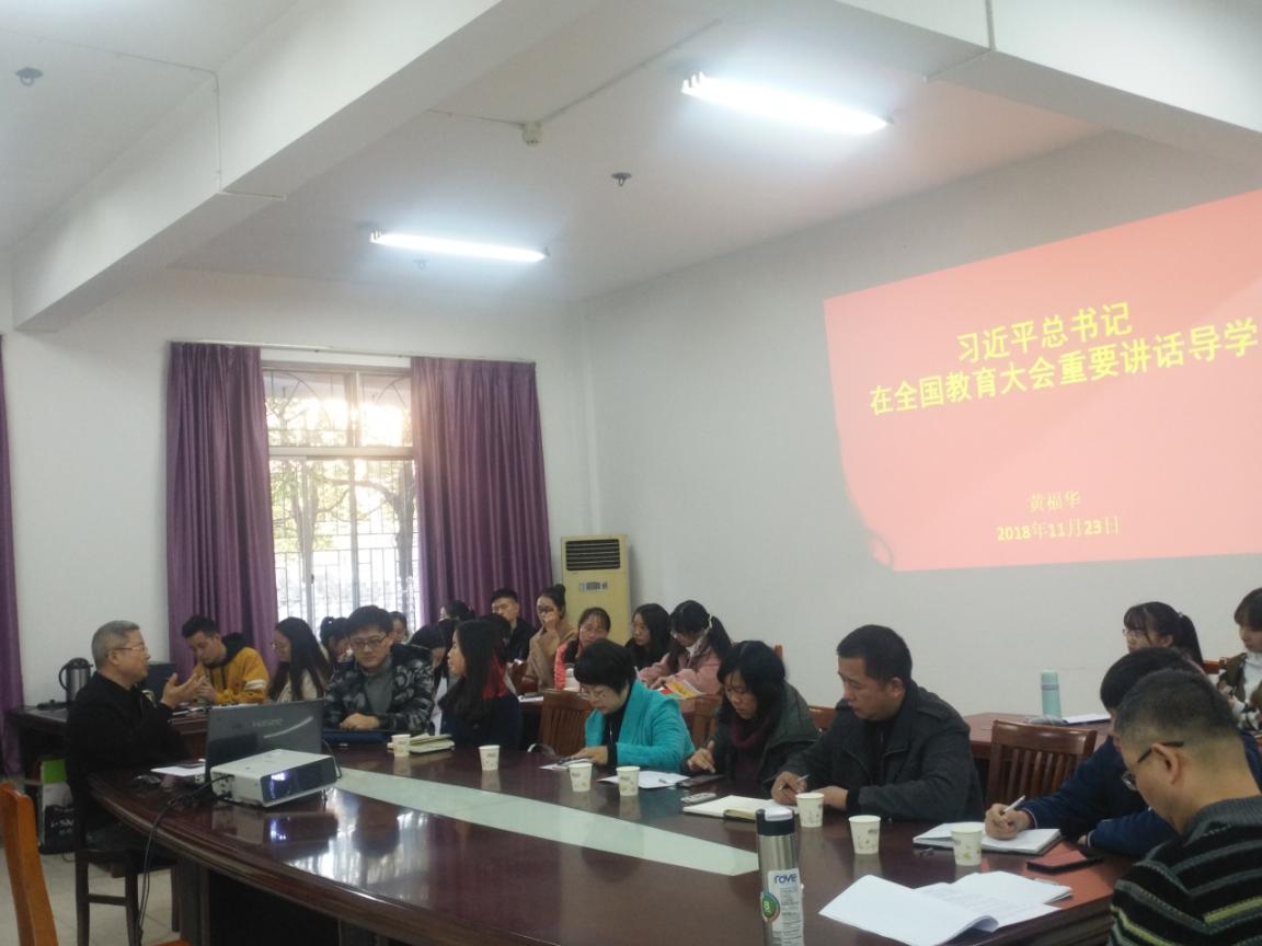 会议第一阶段,邀请了学院党委委员、院长黄福华讲授《习近平总书记在全国教育大会重要讲话导学》党课。黄福华院长首先介绍了全国教育大会召开的背景,学习习近平总书记在全国教育大会重要讲话的意义。然后围绕坚持中国特色社会主义教育发展道路,培养德智体美劳全面发展的社会主义建设者和接班人等习总书记的发言要点,结合学校、学院和物流管理专业实际,从教师应该如何&“教&”,学生应该如何&“学&”,教师和学生如何准确定位,教师和学生应该如何相互促进等方面阐述了自己的见解。最后,黄福华院长要求物流管理系全体师生党员,认真学习领会、全面准确把握习近平总书记关于教育的重要论述的科学内涵和精神实质,要将习近平总书记在全国教育大会重要讲话精神,内化于心外化于行,要用实际行动来践行习近平总书记在全国教育大会重要讲话精神,为学校、学院和物流管理系的发展作出应有贡献。