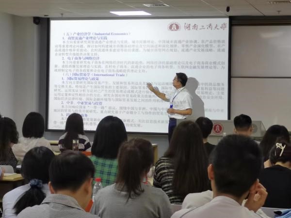 讲座共分为两个环节:一是学科专业介绍,二是研究生导师介绍。在学科专业介绍环节,吴伟平副院长从办学历史、师资队伍、学科建设、研究方向、培养方式等方面向研究生新生介绍应用经济学、理论经济学、国际商务等学科专业的基本情况。在导师介绍环节,吴伟平副院长公布了今年拟招生研究生的指导老师名单,并逐一介绍了每位指导老师的研究领域、学术成果和相关荣誉。