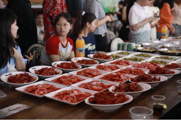 "Boiled fish, boiled prawns, steamed crab, wow! And it's all free." "I heard there's also an evening party?" Huang Shaofeng, a first-year graduate student, and his classmates arrived at the student cafeteria at lunchtime and witnessed this heartwarming scene at the HUTB Cuiya Dining Hall. Although he's from Changde, many students, including Huang, who are busy with their studies, chose to stay on campus and celebrate the festival in Changsha.