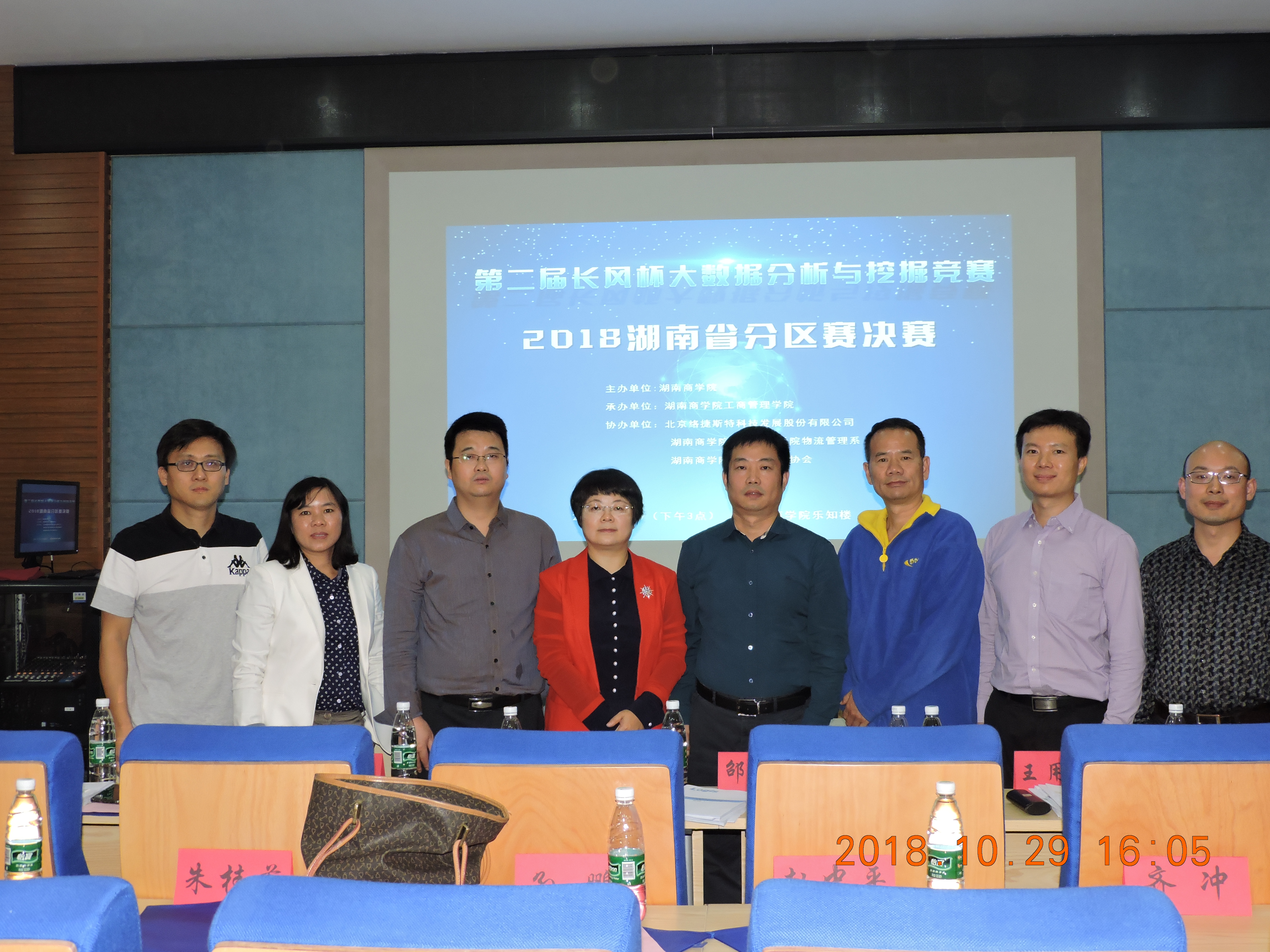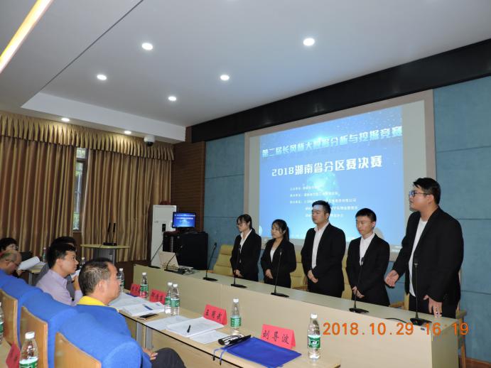 比赛于2018年10月29日下午在乐知楼F104正式开始,邀请到了北京络捷斯特科技发展股份有限公司董事长邵清东先生,北京络捷斯特科技发展股份有限公司大数据总监李宇航先生,湖南一力物流股份有限公司经理王用武先生,湖南商学院工商管理学院副院长徐姝女士,湖南现代物流职业技术学院物流管理学院副院长袁世军先生以及湖南商学院计算机与信息工程学院系主任周新民先生作为评委。物流管理系主任王松老师,物流管理系教师孙鹏老师出席此次比赛。