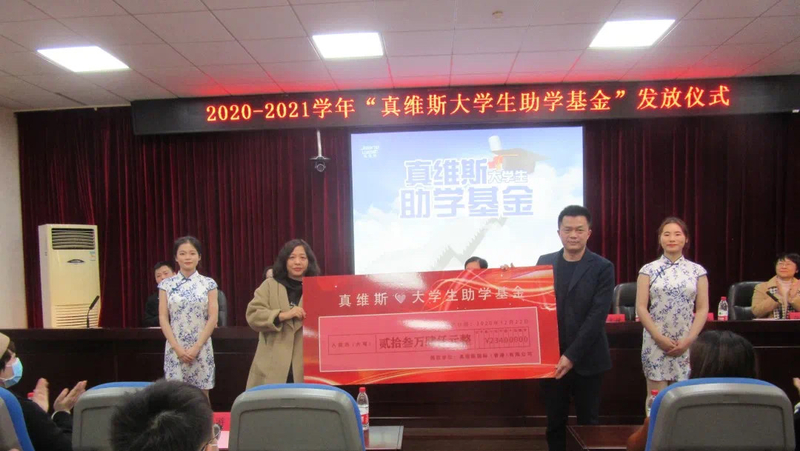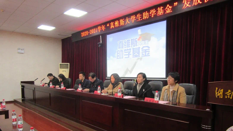 仪式开始,湖南工商大学副校长曾伏秋进行欢迎致辞。他指出,真维斯多次开展热心社会公益事业,是一家富有社会责任感的企业同时,他也对大家提出两点希望,一是希望同学们积极进取,勤学好问,懂得感恩,二是要树立“平等意识”和“公益意识”,积极向上、关爱别人、奉献社会,这有利于同学们更好地理解和认同“助人自助”的根本目的。在致辞的最后,曾伏秋副校长对真维斯公司、中国青少年发展基金会以及湖南省青少年发展基金会扶贫济困的善行义举表示衷心的感谢,同时也祝愿湖南工商大学和湖南师范大学前程似锦、蒸蒸日上。紧接着,仪式进行第二项,真维斯向湖南省青少年发展基金会递交真维斯大学生助学基金捐赠牌。接下来,仪式进行第三项,湖南省青少年发展基金会向真维斯颁发希望工程捐赠荣誉纪念牌,仪式进行到第四项,受助学生代表领取2020—2021学年度“真维斯大学生助学基金”,紧接在后的是仪式第五项,由湖南工商大学受助学生代表唐家宝,钟月婷同学,湖南师范大学受助学生代表谢梦瑶,王丽霞,邱长洪,吴雅培同学向真维斯赠送纪念品。其后,受助学生代表王周义,戴欣怡同学向湖南省青少年发展基金会赠送纪念品。此外,受助学生代表湖南工商大学工商管理学院蒋露雨同学也进行了发言,她用自己的个人经历积极鼓励身处困境的同学奋发图强,勇敢追梦,在未来做传播爱心的人,努力回报社会,让这份爱心发挥出最大的社会价值。最后,真维斯华中区副总经理李志媛女士发表讲话,她表示,由于疫情的原因,大家受不到了不同程度的影响,而让学生拥用良好的学习环境,帮助学生完成学业,激励学生成长成才,是真维斯公司坚持不懈的社会责任,与此同时,她也希望每一位受助的同学时刻怀有感恩之心,力所能及的帮助他人,继续进行爱心的传递。最后,她指出当代的青年人应该认真负责抓住时代的机遇,不负青春,不负韶华,不负时代,走好人生道路,为实现中华民族伟大复兴梦想的奋斗。